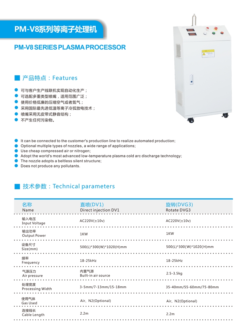 7. 采用國際先進低溫等離子冷弧放電技術;