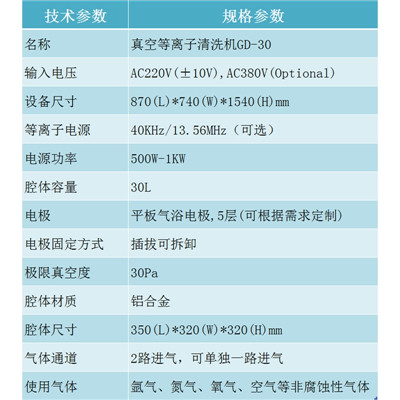 30L真空等離子清洗機(jī)-等離子設(shè)備-等離子處理機(jī)-等離子處理系統(tǒng)GD-30 技術(shù)參數(shù)
